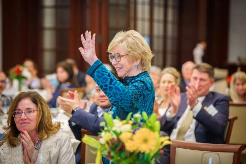 Attendees mingled outside in the balmy spring evening before enjoying a delicious dinner. Two scholars and a scholar alumnus underscored the evening’s emphasis on innovation by summarizing their amazing, cutting-edge research made possible through ARCS-MWC support. Members and guests enthusiastically participated in the Fund-A-Scholar Challenge, generously contributing towards the evening’s overall success in generating enough funding to support one ARCS-MWC PhD Scholar.